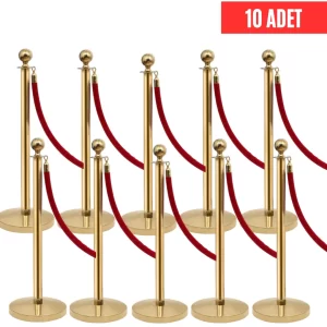 Krom Protokol Pirinç Bariyer 10 Adet Bariyer + 10 Kordon